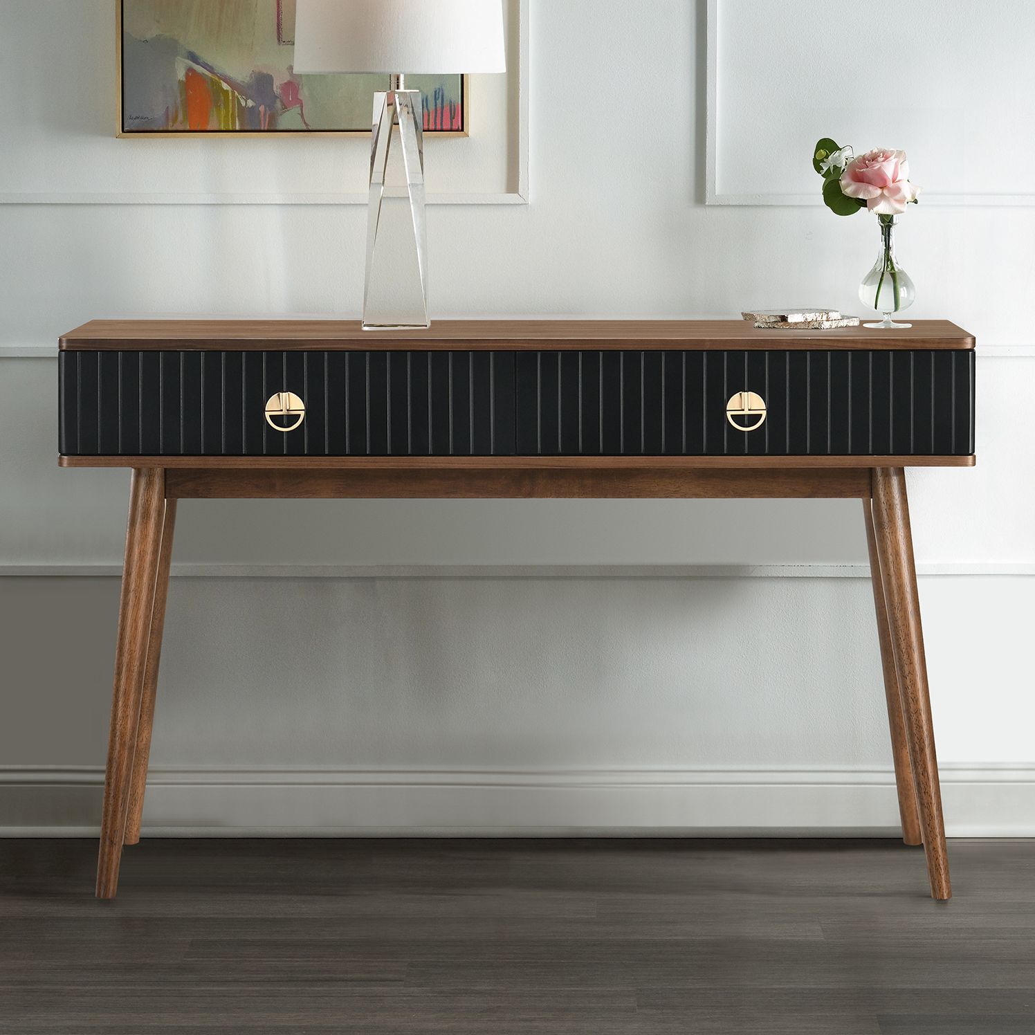 Amigo Console Table in Walnut Wood and Black Veneer