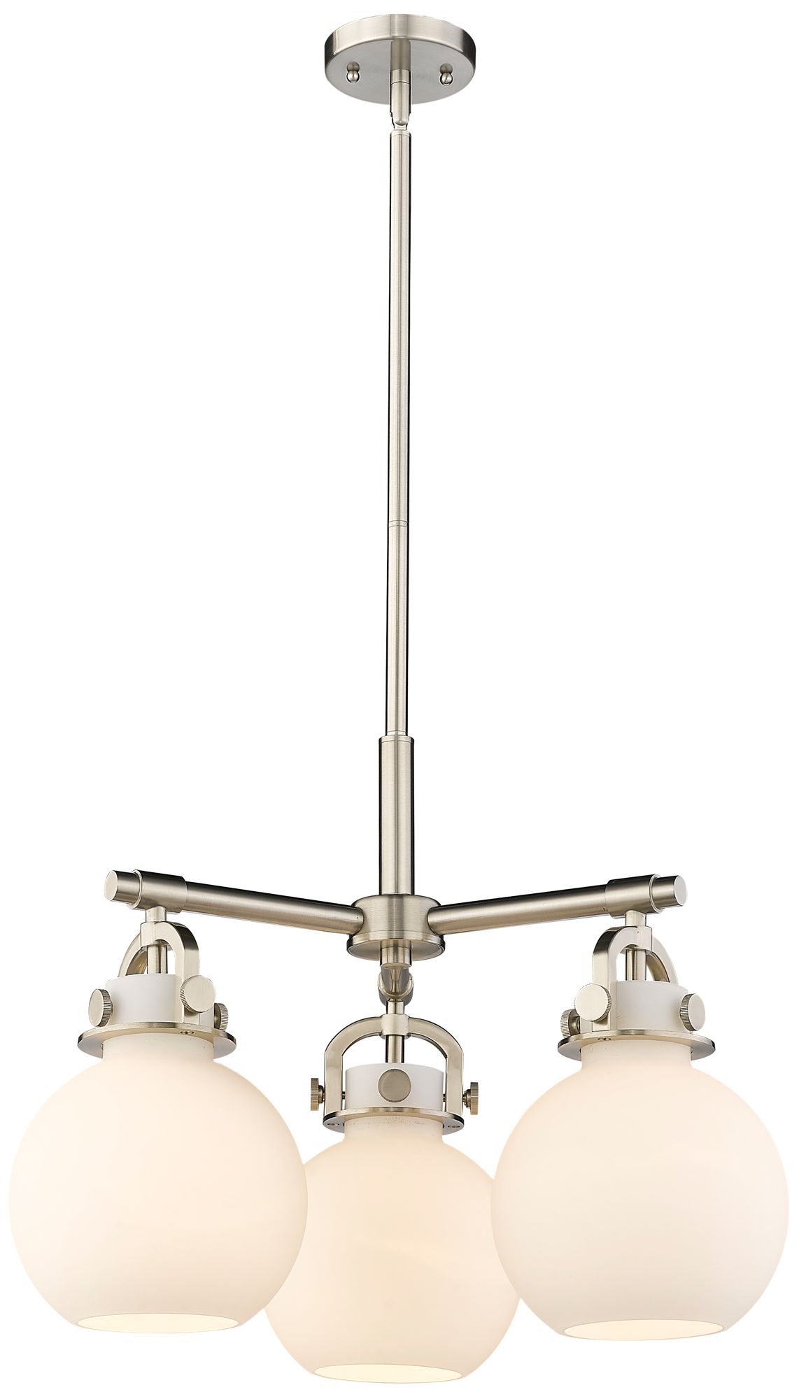 Newton Sphere 20.4"W 3 Light Stem Hung Satin Nickel Pendant w/ White S