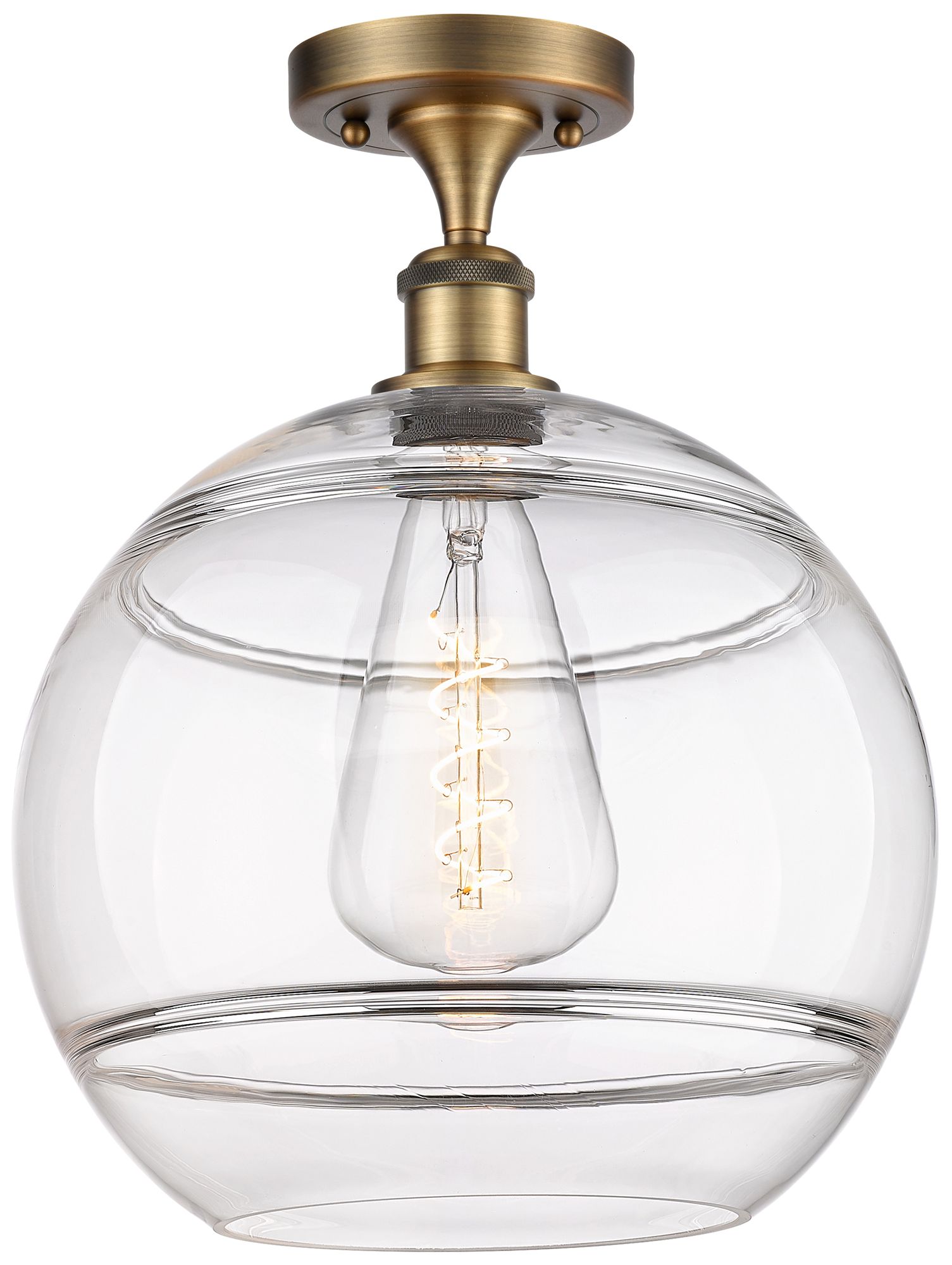 Ballston Rochester 12" Wide Brushed Brass Semi-Flush Mount With Clear