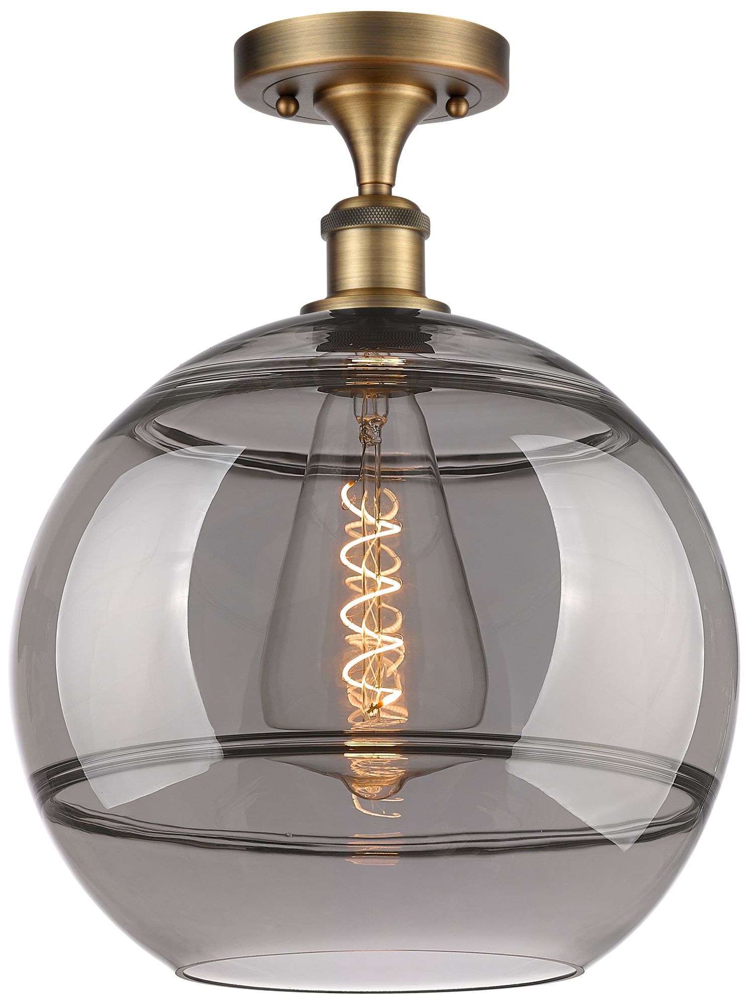 Ballston Rochester 12"W Brushed Brass Semi-Flush Mount w/ Light Smoke