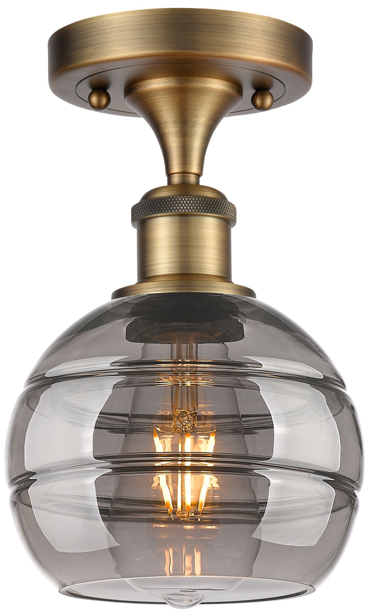 Ballston Rochester 5.88"W Brushed Brass Semi-Flush w/ Light Smoke Shad