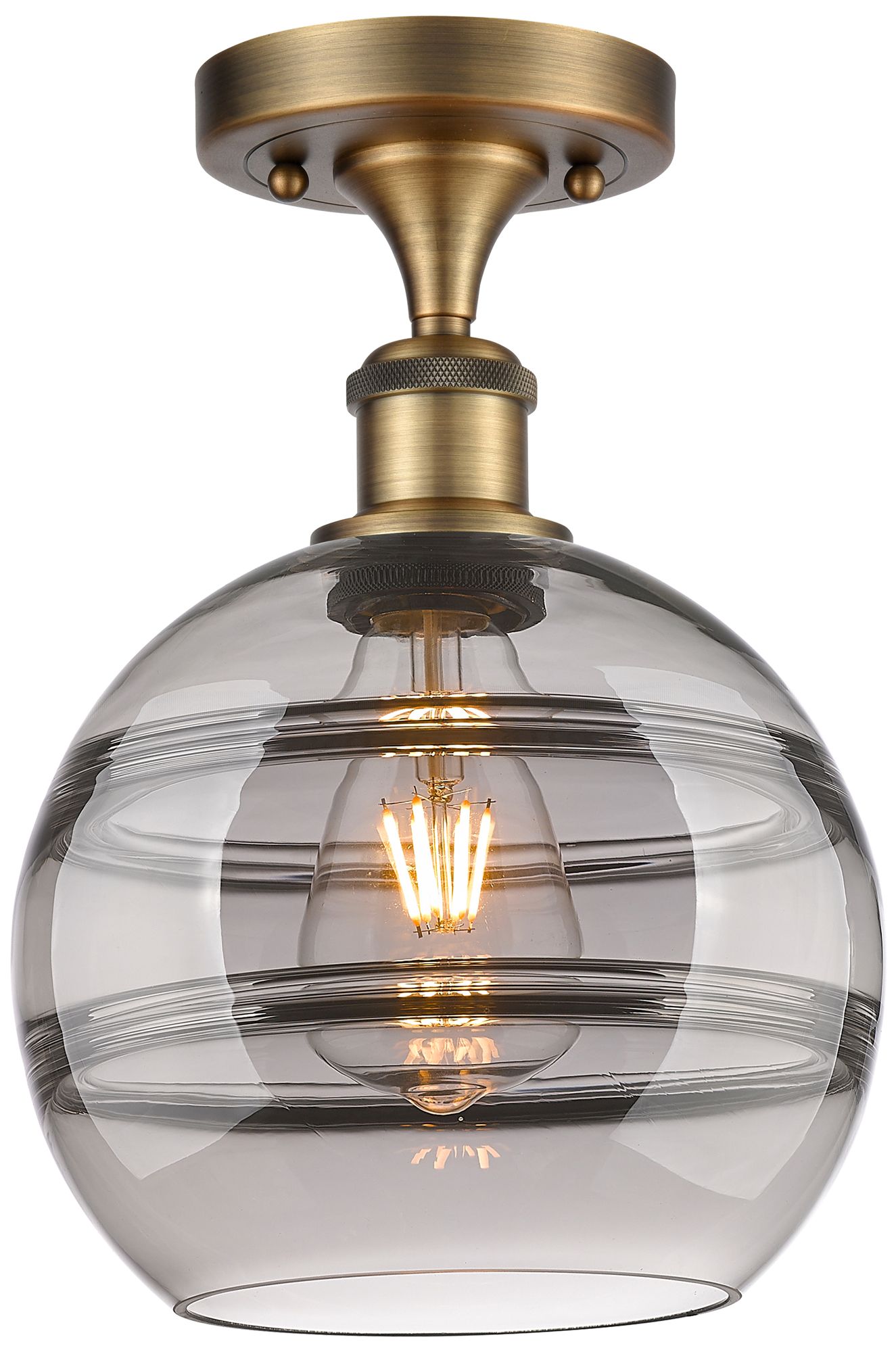 Ballston Rochester 8"W Brushed Brass Semi-Flush Mount w/ Light Smoke S
