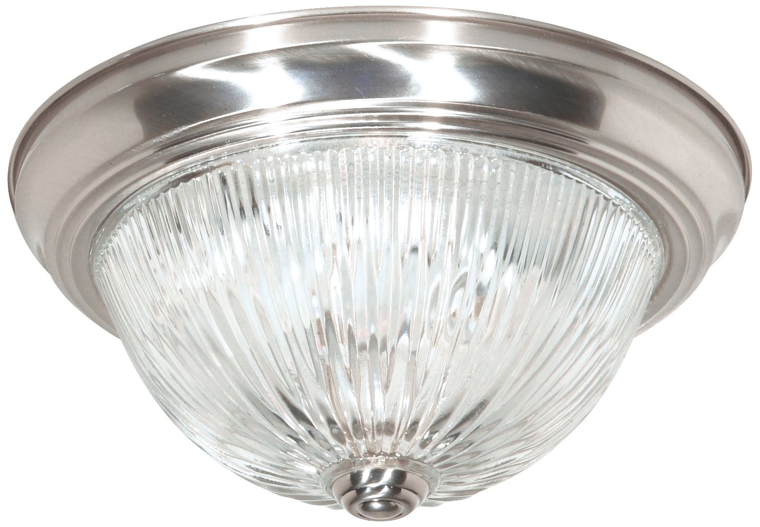 3 Light - 15" - Flush Mount - Clear Ribbed Glass - Brushed Nickel Fini