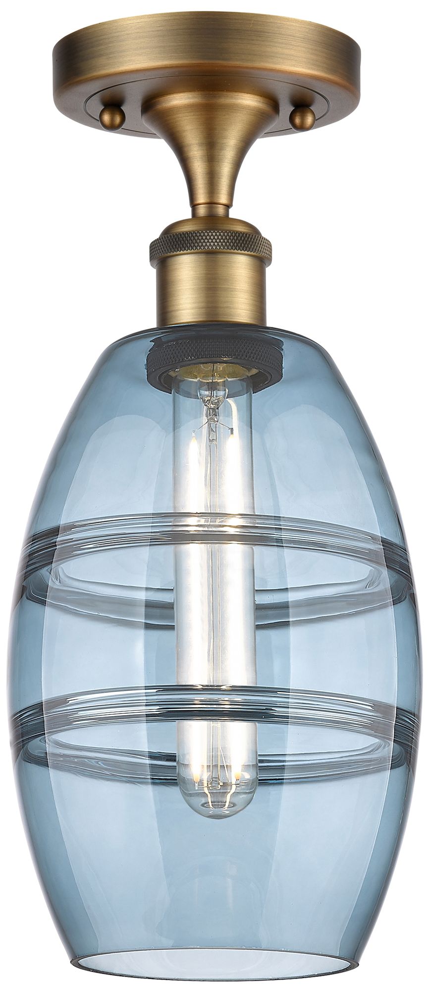 Ballston Vaz 5.88"W Brushed Brass Semi-Flush Mount w/ Princess Blue Sh