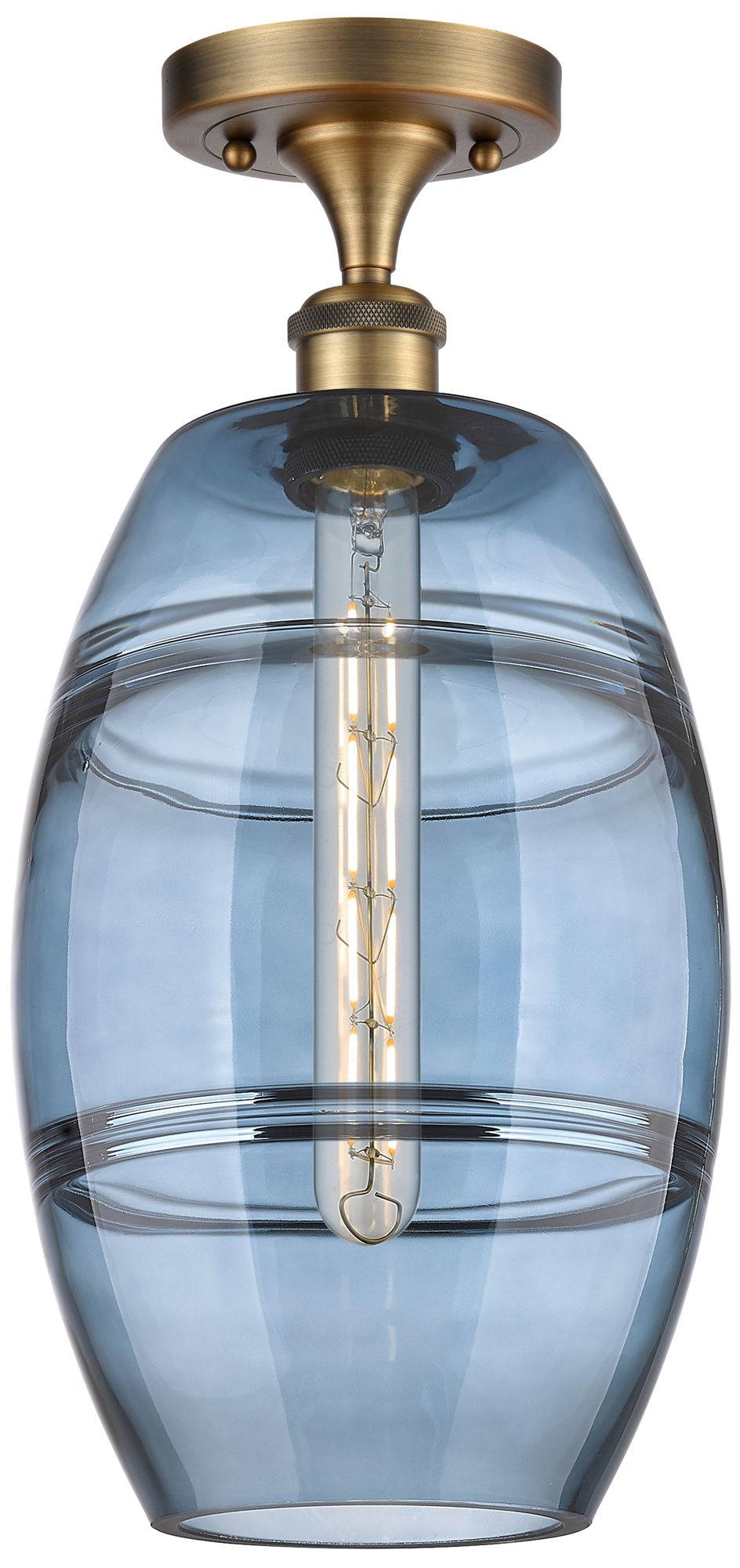 Ballston Vaz 8" Wide Brushed Brass Semi-Flush Mount w/ Princess Blue S