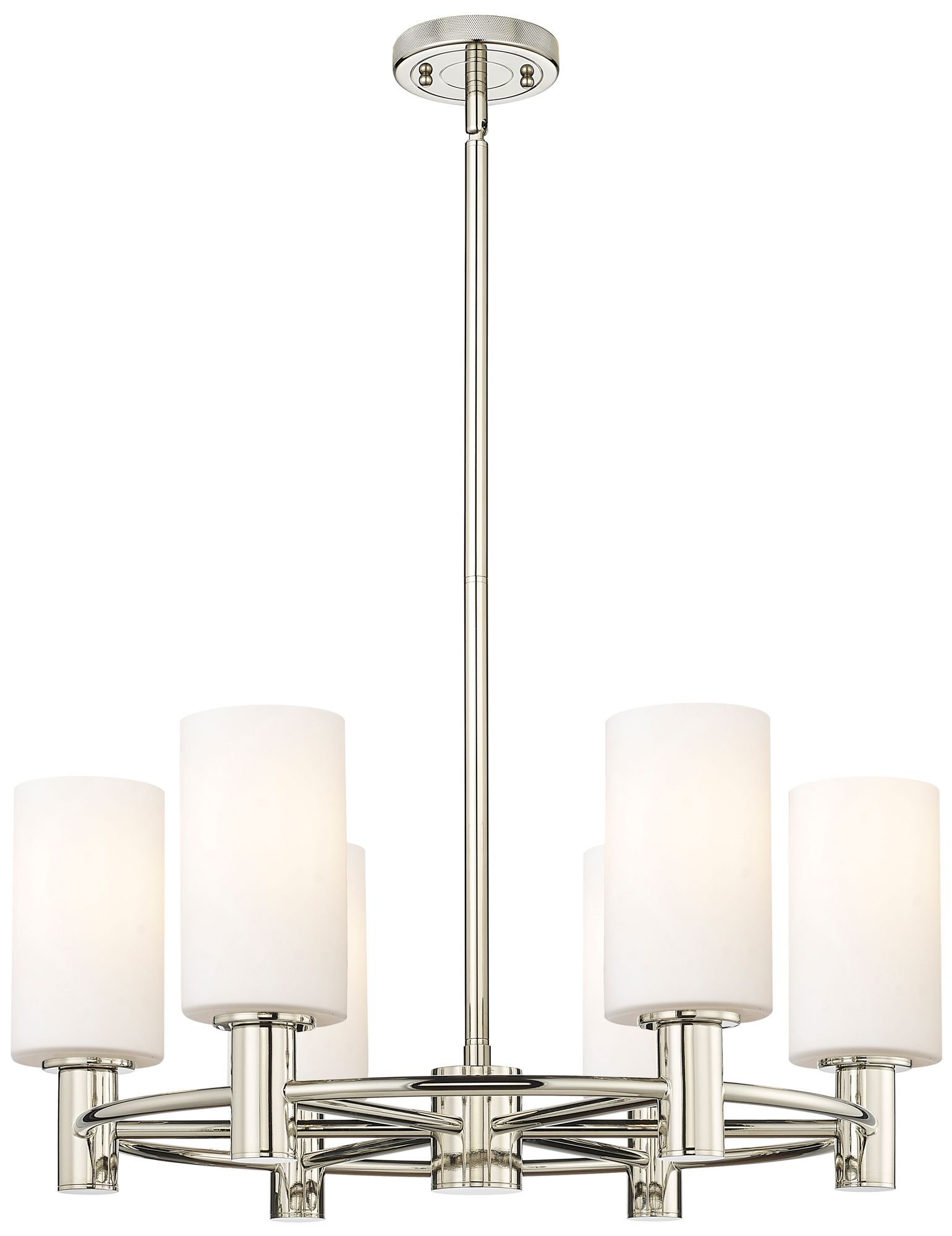 Crown Point 24"W 6 Light Polished Nickel Stemmed Chandelier w/ White S