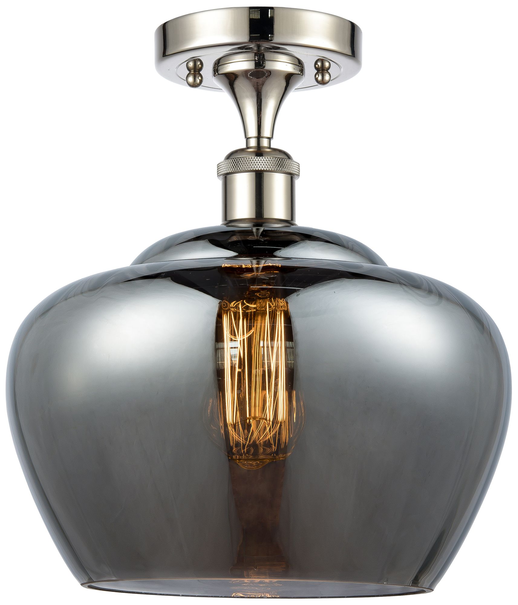 Ballston Fenton 11"W Polished Nickel Semi Flush Mount w/ Plated Smoke