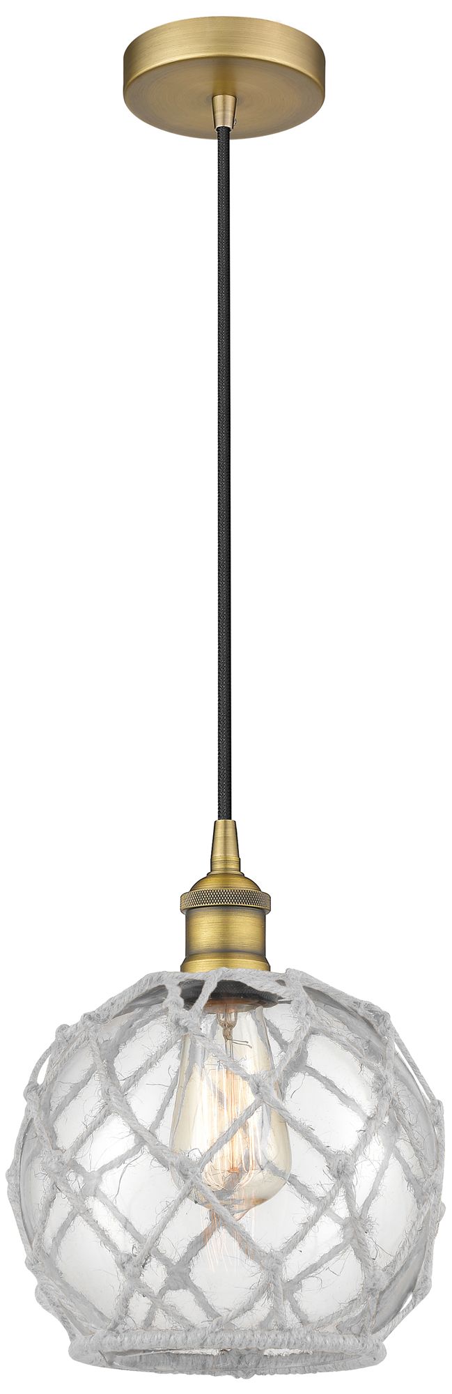 Edison Farmhouse 8" Brushed Brass Corded Pendant w/ Clear & White
