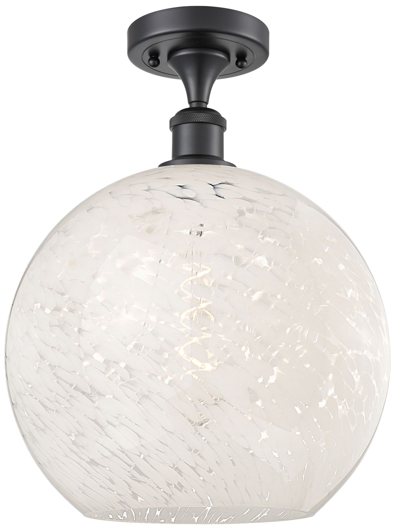Ballston 12" Wide Matte Black Semi-Flush Mount With White Mouchette Sh