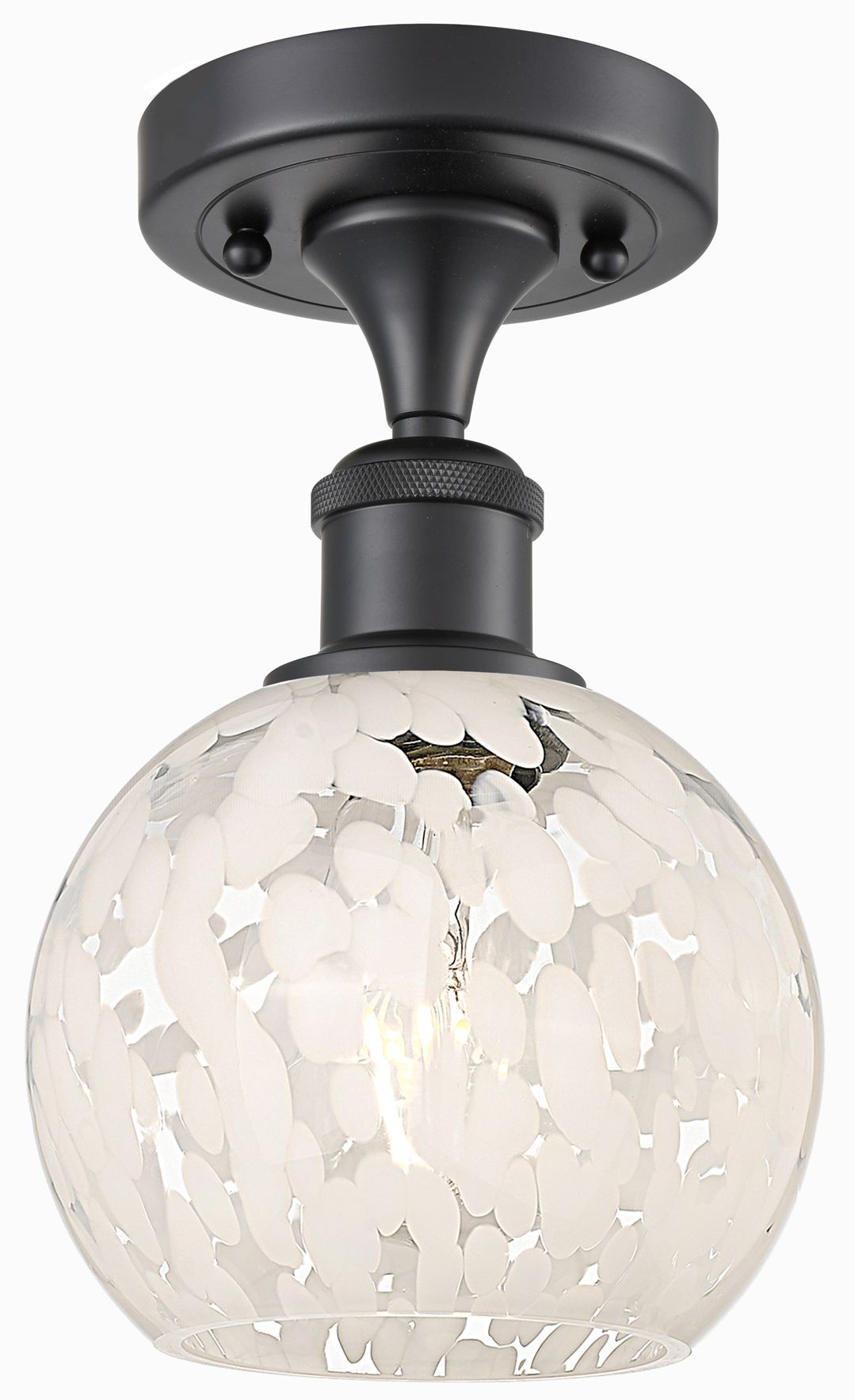 Ballston 6" Wide Matte Black Semi-Flush Mount With White Mouchette Sha