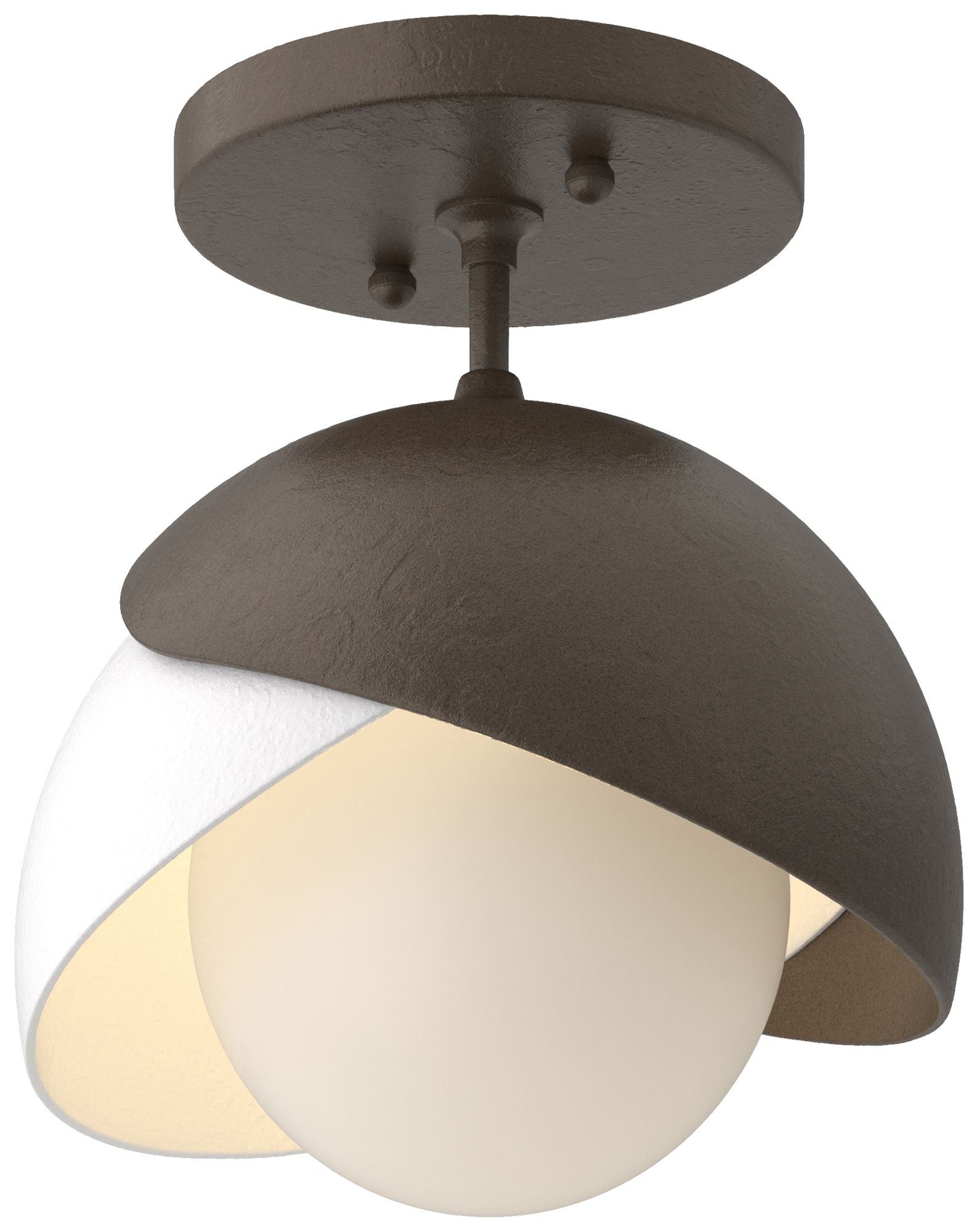 Brooklyn 6"W White Accented Double Shade Bronze Semi-Flush With Opal G