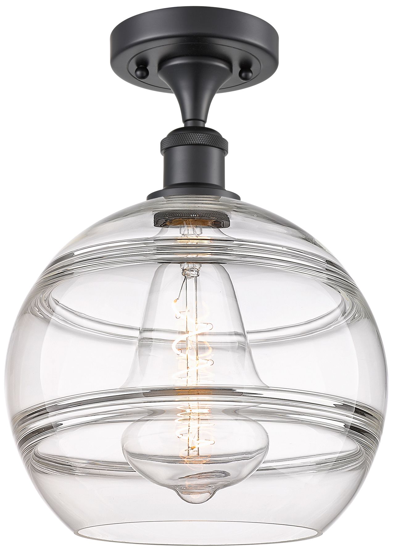 Ballston Rochester 10" Wide Matte Black Semi-Flush Mount With Clear Sh