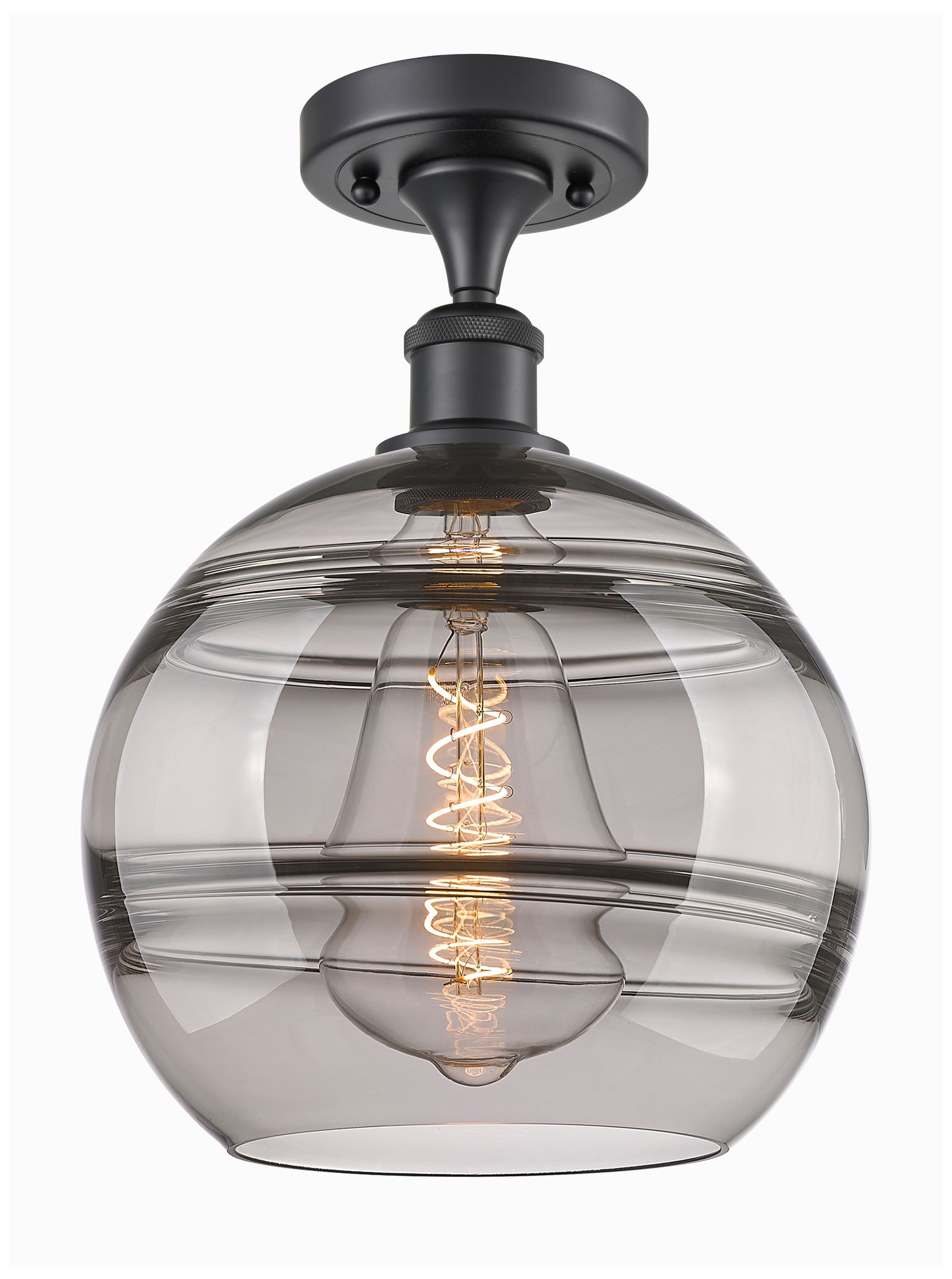 Ballston Rochester 10"W Matte Black Semi-Flush Mount w/ Light Smoke Sh