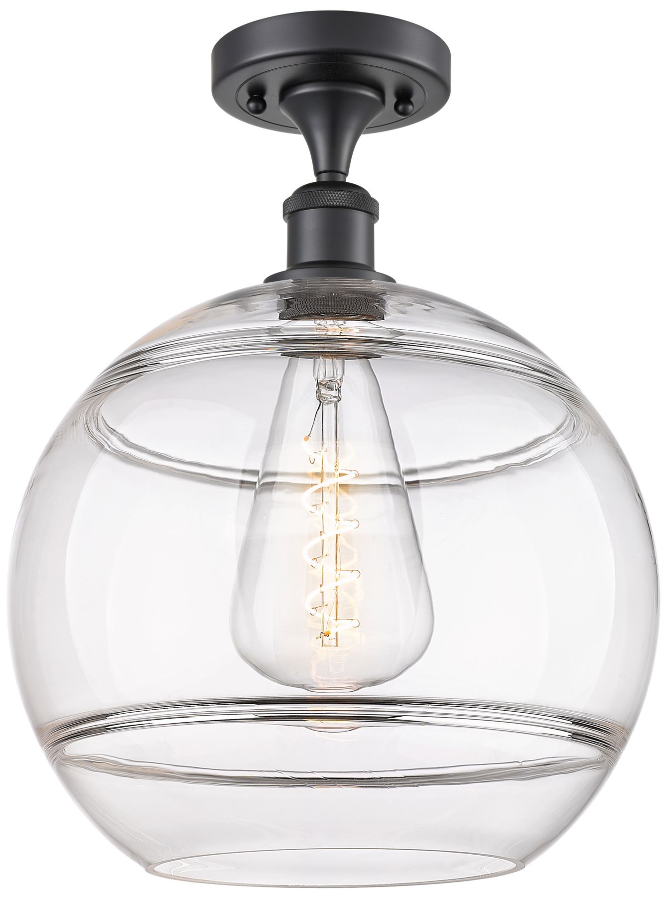 Ballston Rochester 12" Wide Matte Black Semi-Flush Mount With Clear Sh