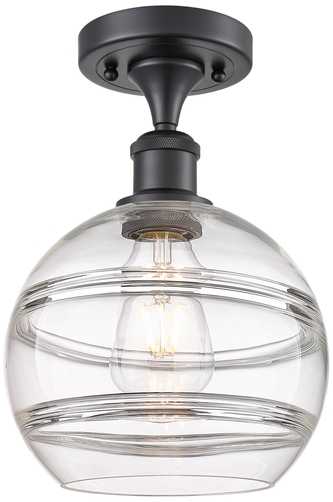 Ballston Rochester 8" Wide Matte Black Semi-Flush Mount With Clear Sha