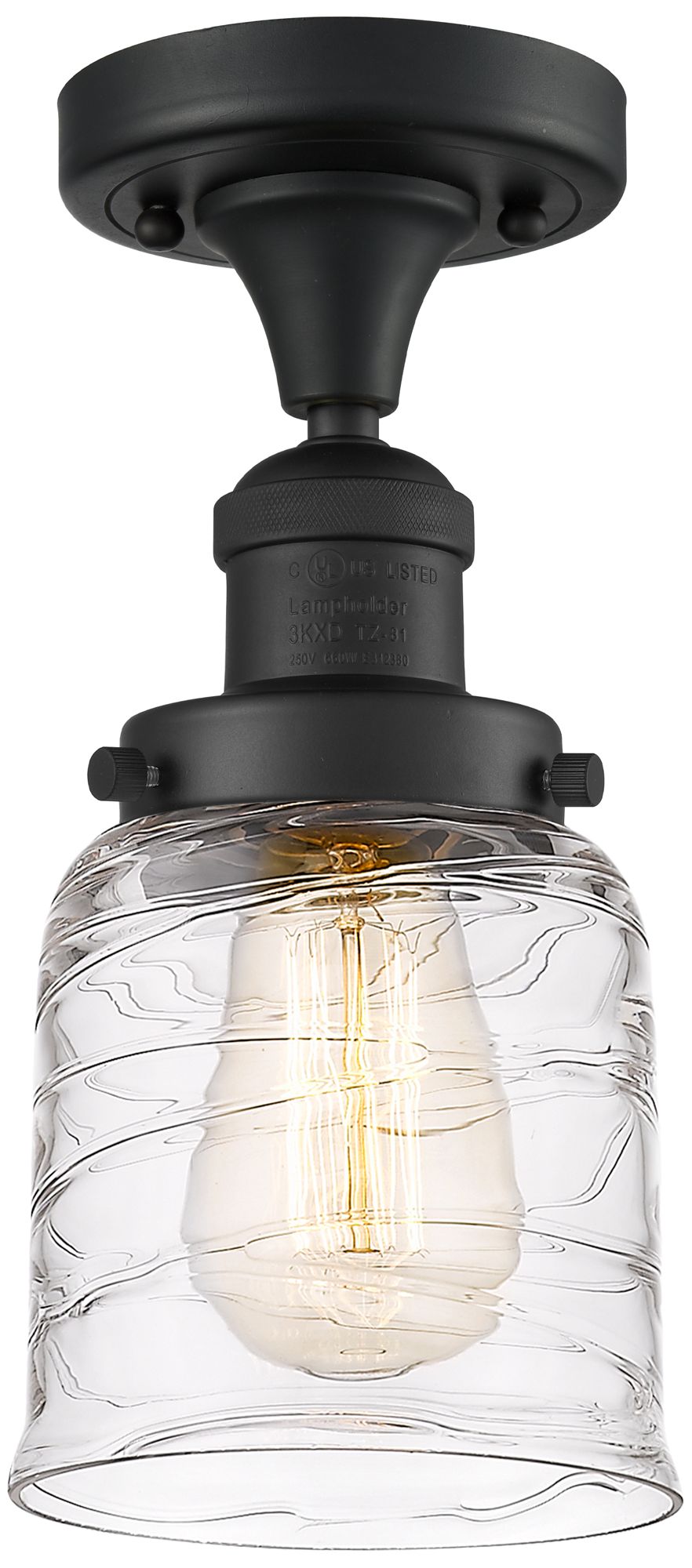 Bell 5" LED Semi-Flush Mount - Matte Black - Deco Swirl Shade