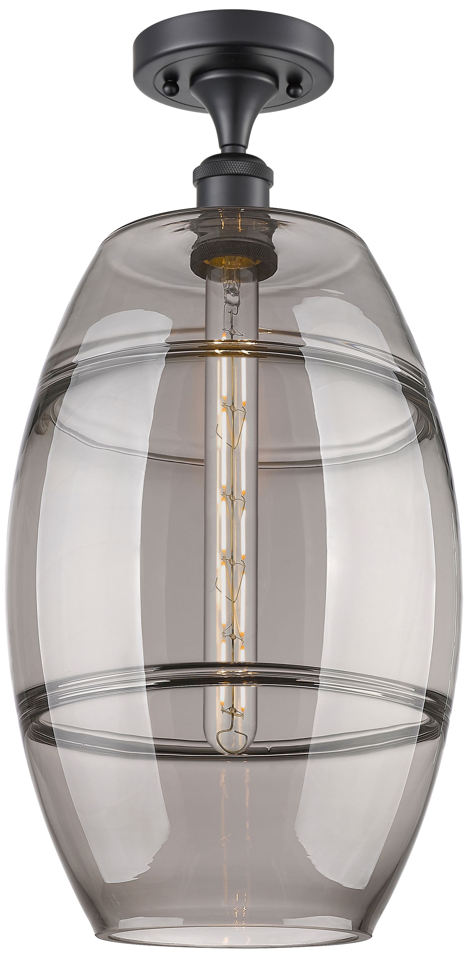 Ballston Vaz 10" Wide Matte Black Semi-Flush Mount With Light Smoke Sh