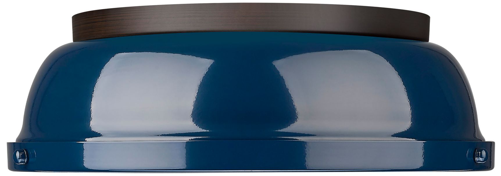 Duncan 14" Flush Mount in Rubbed Bronze with Matte Navy