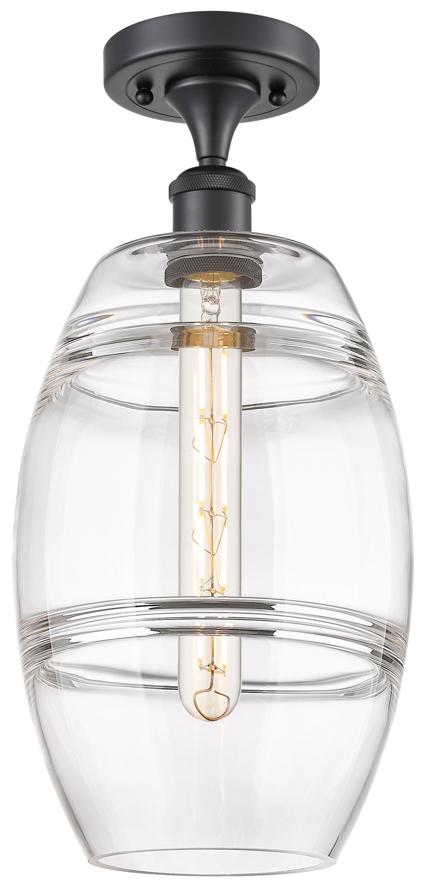 Ballston Vaz 8" Wide Matte Black Semi-Flush Mount With Clear Shade