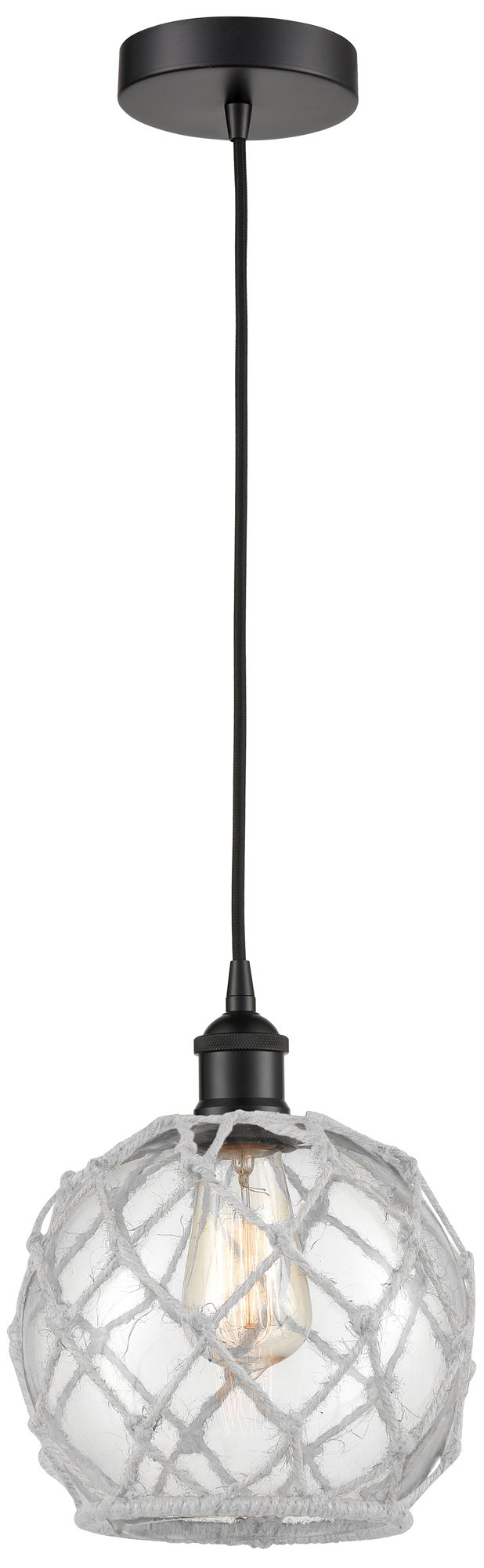 Edison Farmhouse 8" Matte Black Corded Mini Pendant w/ Clear & Whi
