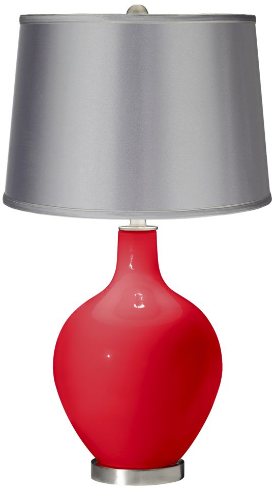 Poppy Red - Satin Light Gray Shade Ovo Table Lamp