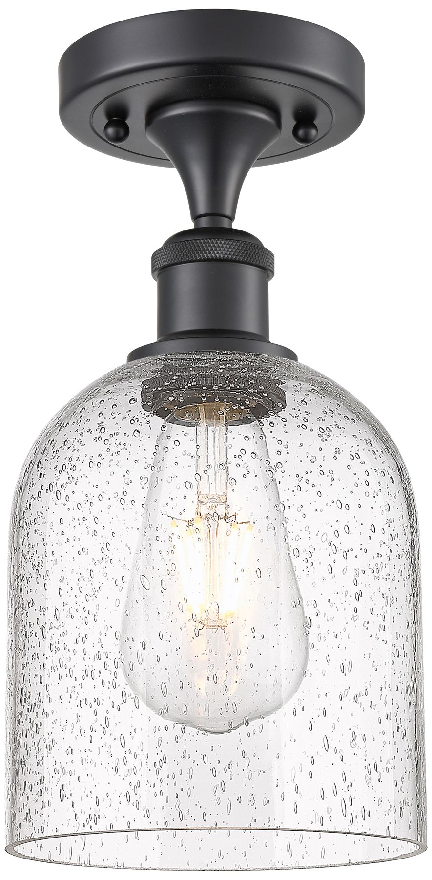 Ballston Bella 5.5" Wide Matte Black Semi-Flush Mount With Seedy Shade