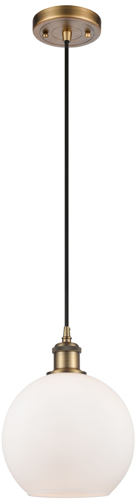 Ballston Athens 8"W Cord Hung Brushed Brass Mini Pendant w/ White Shad