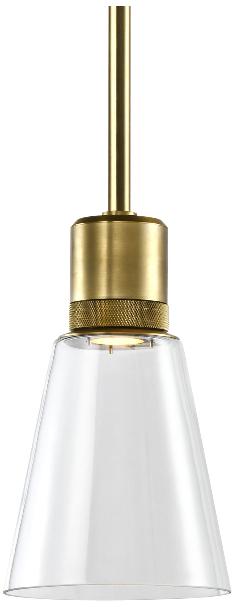 Zigrina 7" LED 3CCT Clear Bell Glass Pendant Light, Aged Brass Metal F