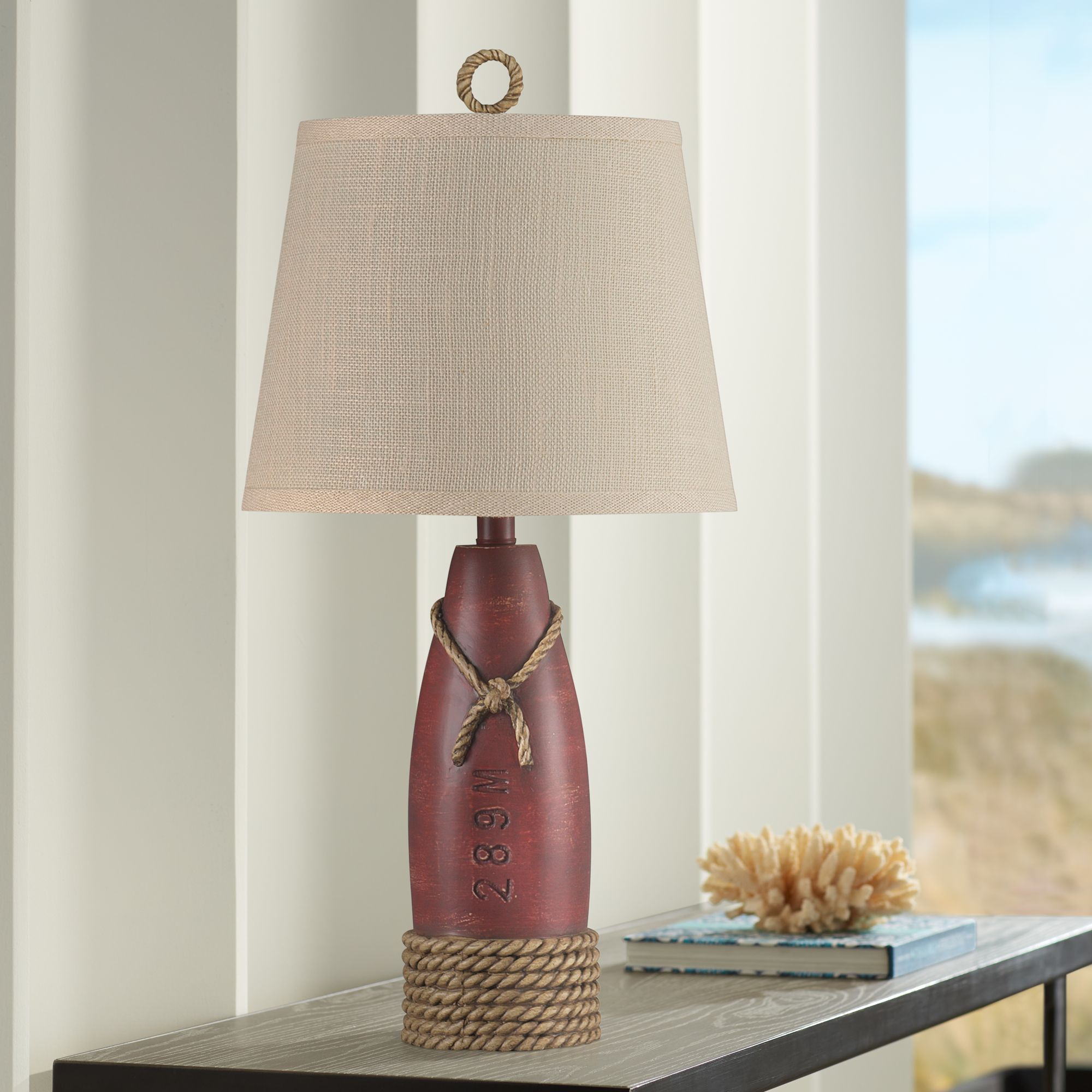 Rope and Buoy 26.5" Cream Canvas Nantucket Red Coastal Table Lamp
