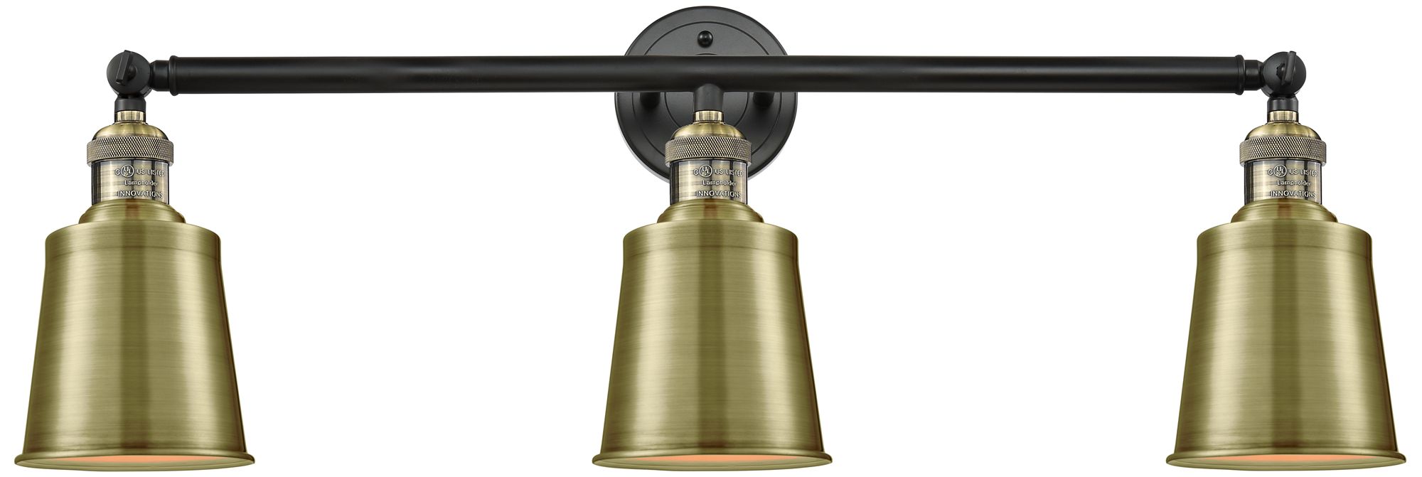 Addison 32" 3-Light Black Antique Brass Bath Light w/ Antique Brass Sh