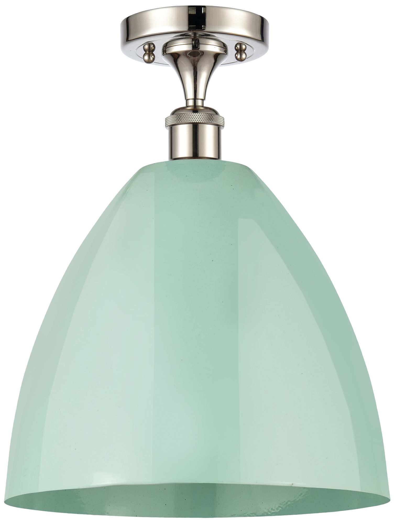 Plymouth Dome 12" Wide Polished Nickel Semi Flush Mount w/ Seafoam Sha