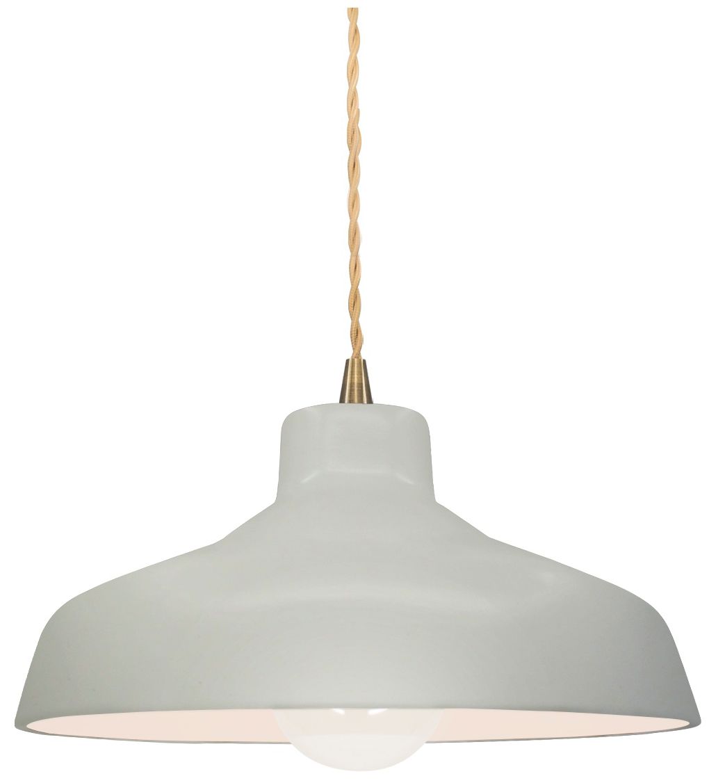 11.5"W Matte White Frame Antique Brass Small Loft Beige Twisted Pendan
