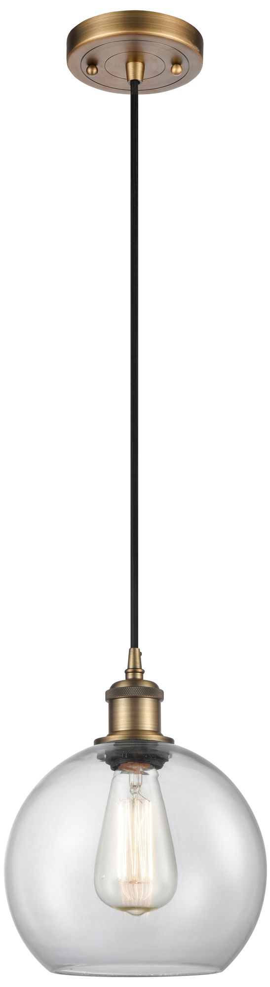 Ballston Athens 8"W Cord Hung Brushed Brass Mini Pendant w/ Clear Shad