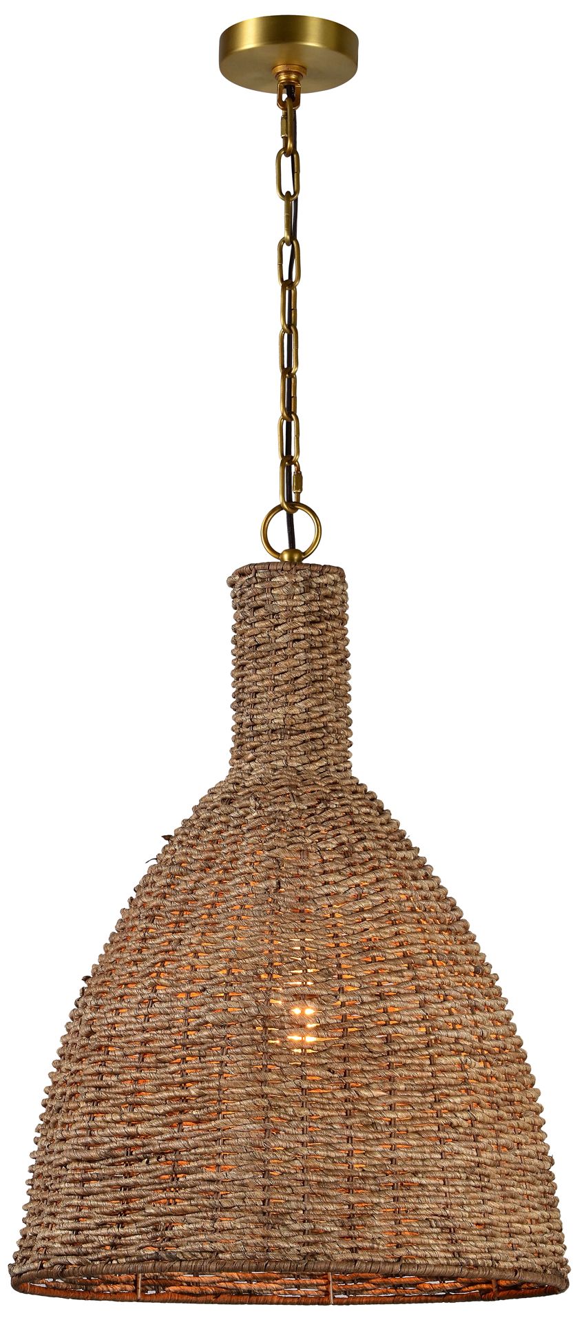 Forty West Nevis 18x26.5" Rattan and Metal Pendant