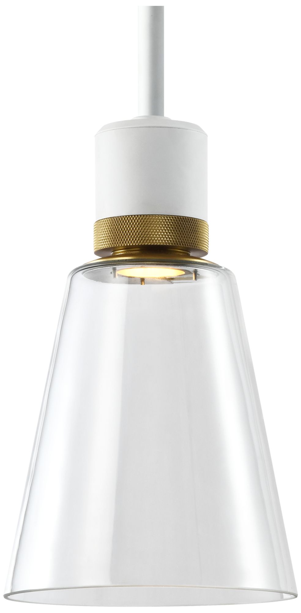 Zigrina 7" LED 3CCT Clear Bell Glass Pendant, White with Brass Metal F