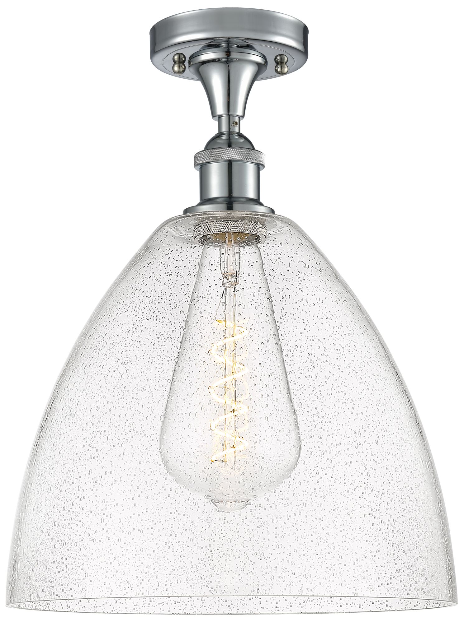 Bristol Glass 12" Semi-Flush Mount - Polished Chrome - Seedy Shade