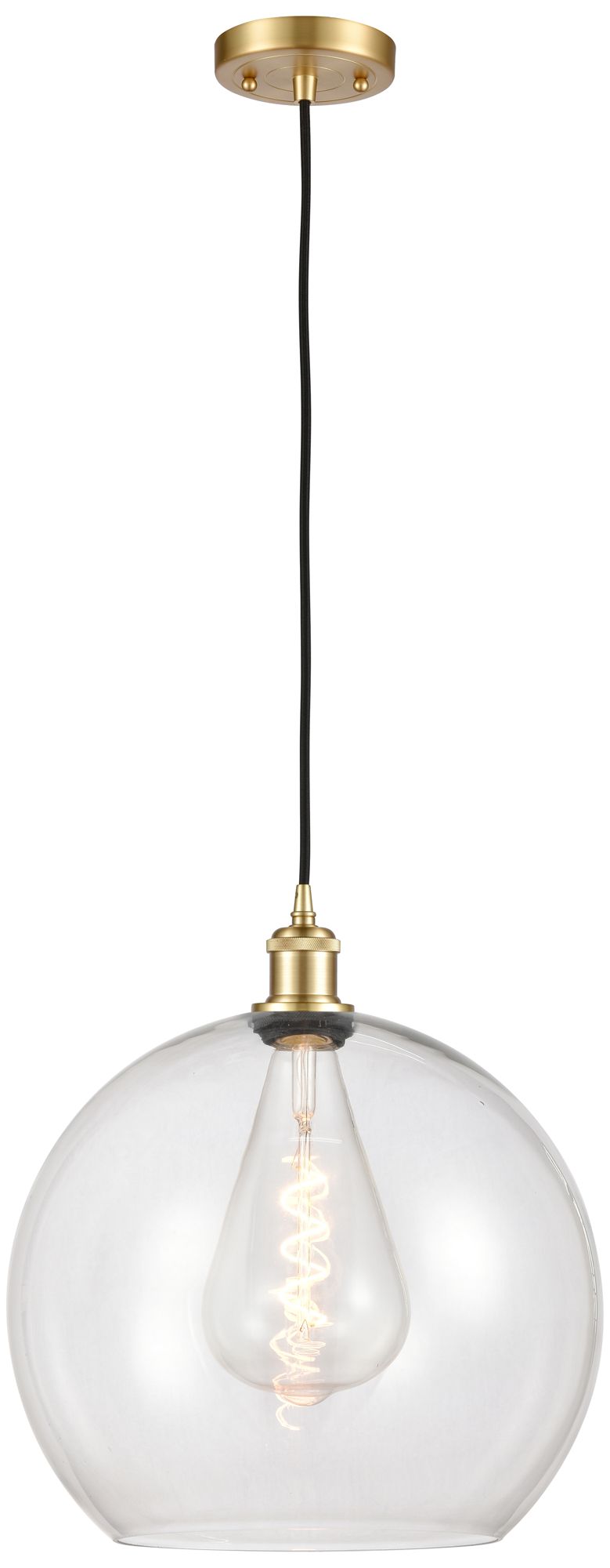 Ballston Athens 14" Satin Gold Pendant With Clear Shade