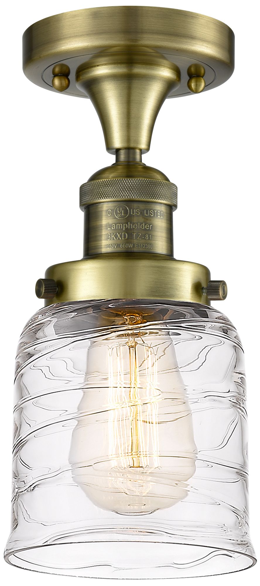 Bell 5" Semi-Flush Mount - Antique Brass - Deco Swirl Shade