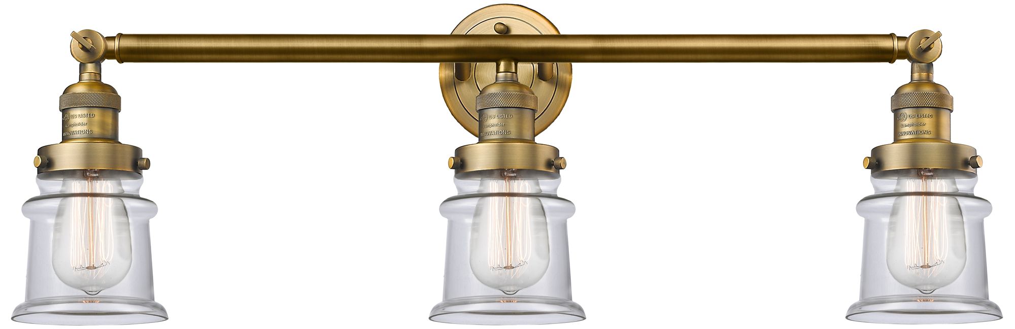 Canton 30" 3-Light Brushed Brass Bath Light w/ Clear Shade
