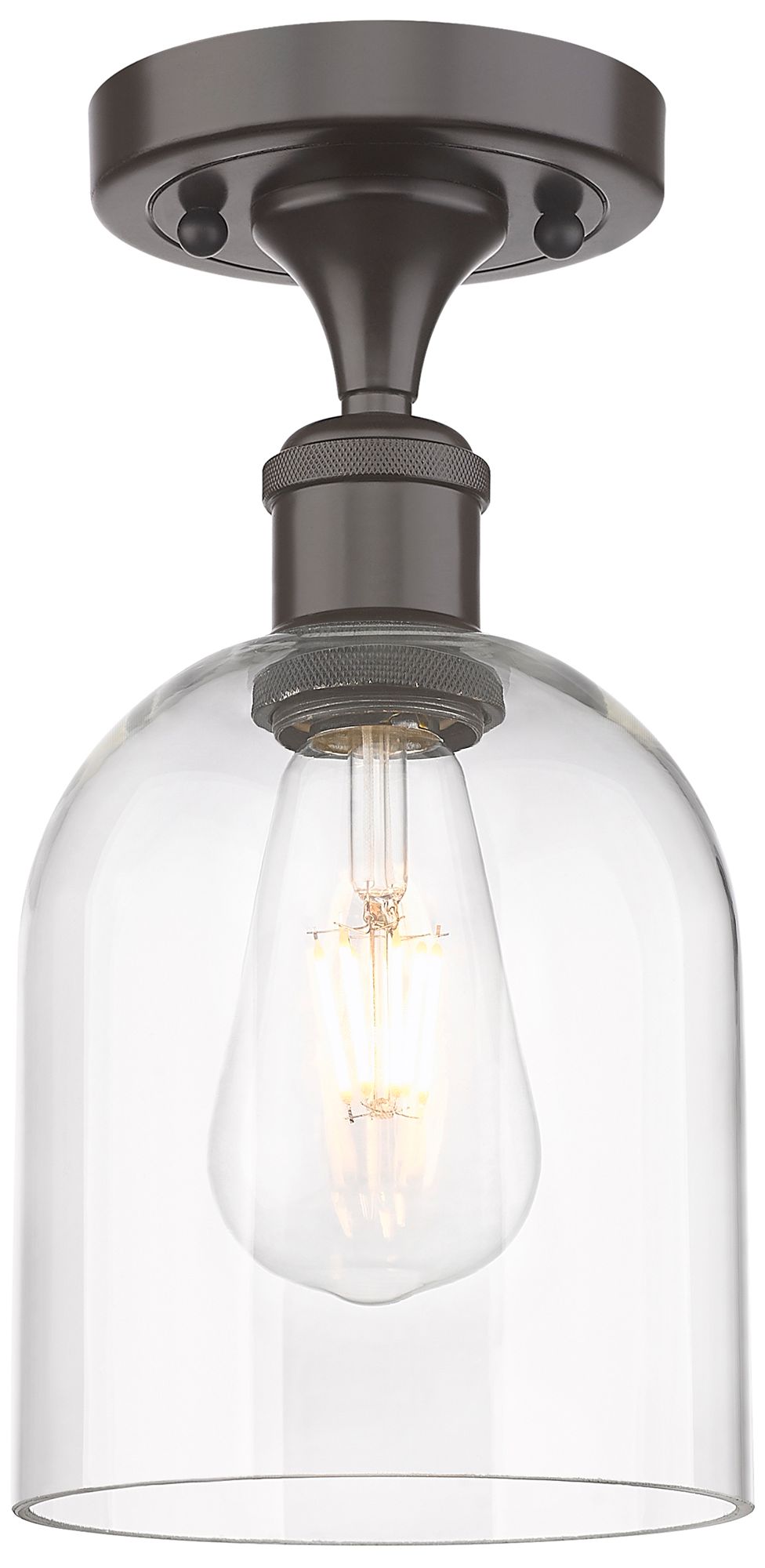 Ballston Bella 5.5"W Oiled Bronze Semi-Flush w/ Clear Deco Swirl Shade