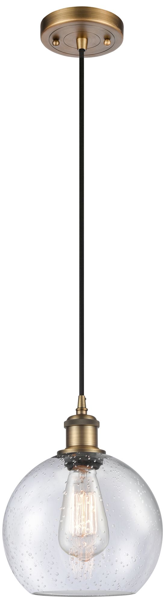 Ballston Athens 8"W Cord Hung Brushed Brass Mini Pendant w/ Seedy Shad