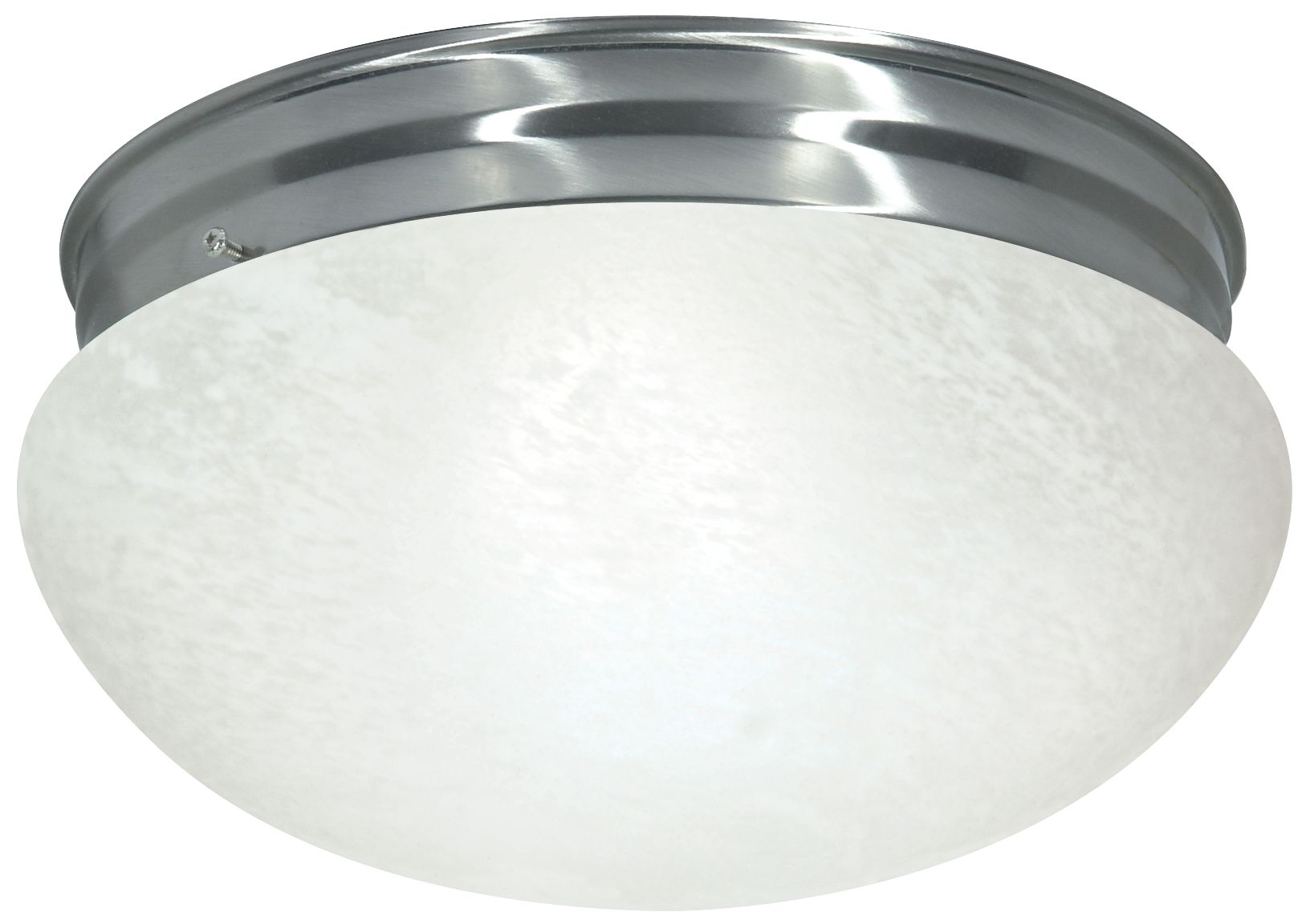 2 Light - 12" - Flush Mount - Alabaster Mushroom - Brushed Nickel Fini