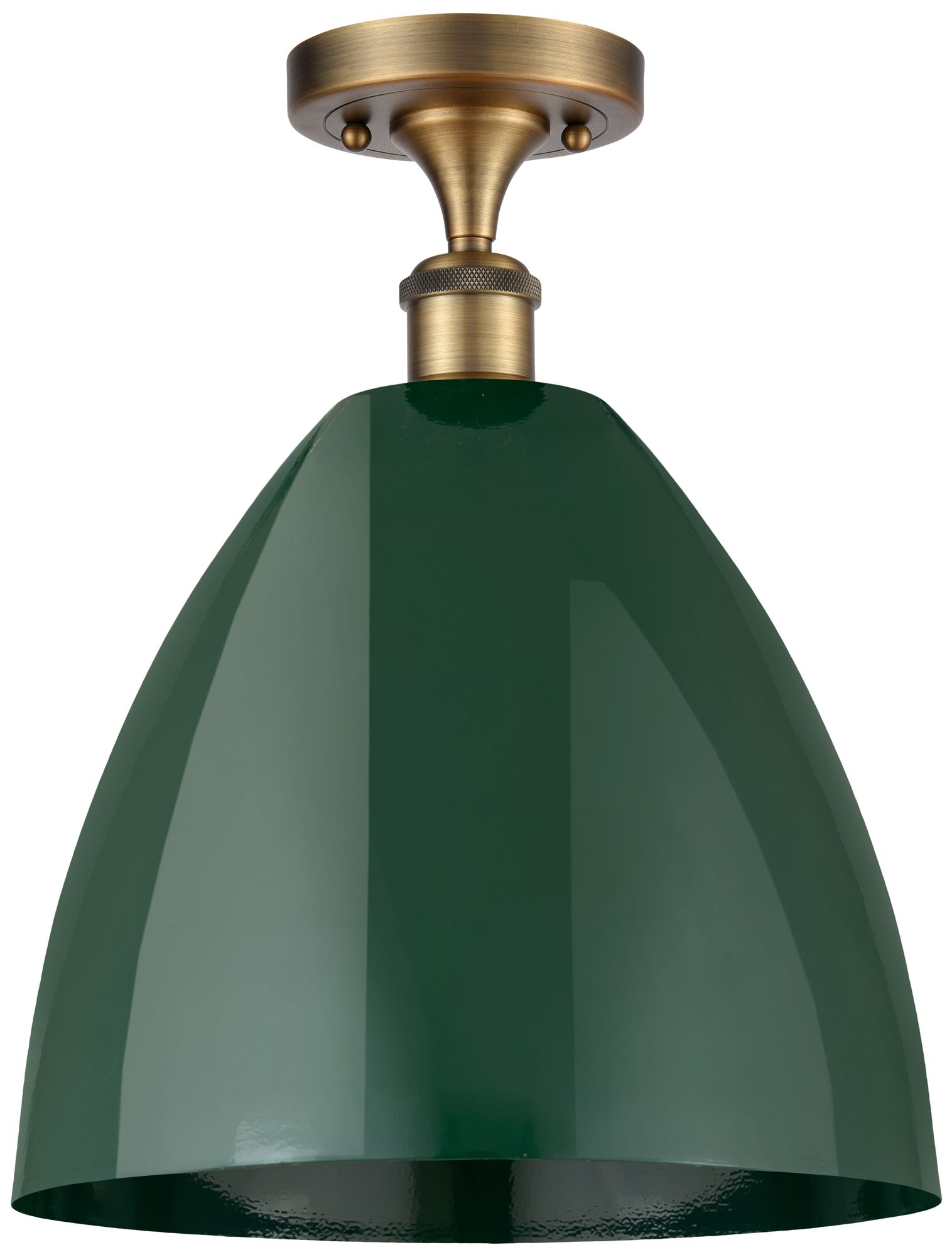 Plymouth Dome 12" Wide Brushed Brass Semi Flush Mount w/ Green Shade