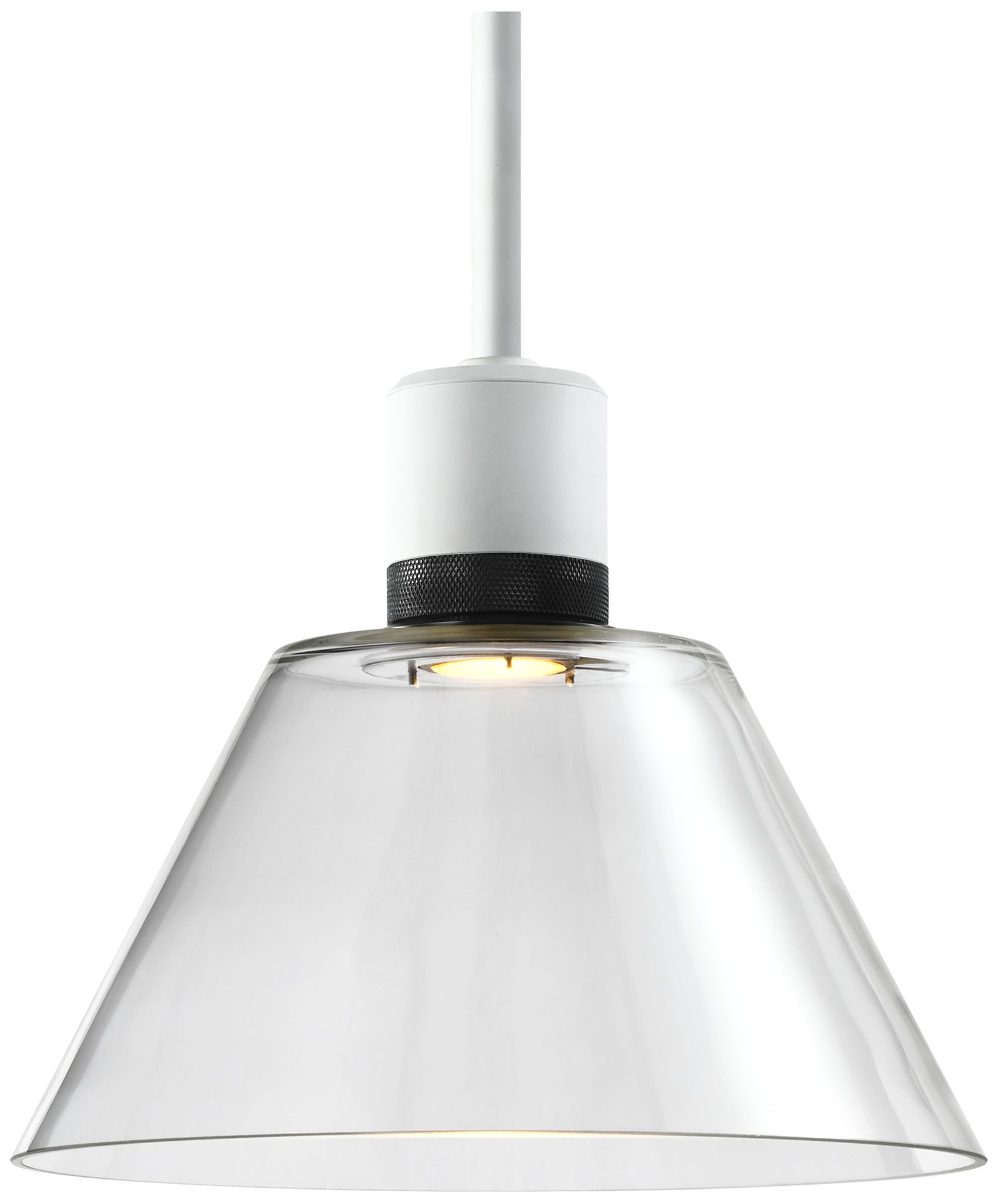 Zigrina 12" LED 3CCT Clear Cone Glass Pendant, White & Black Metal