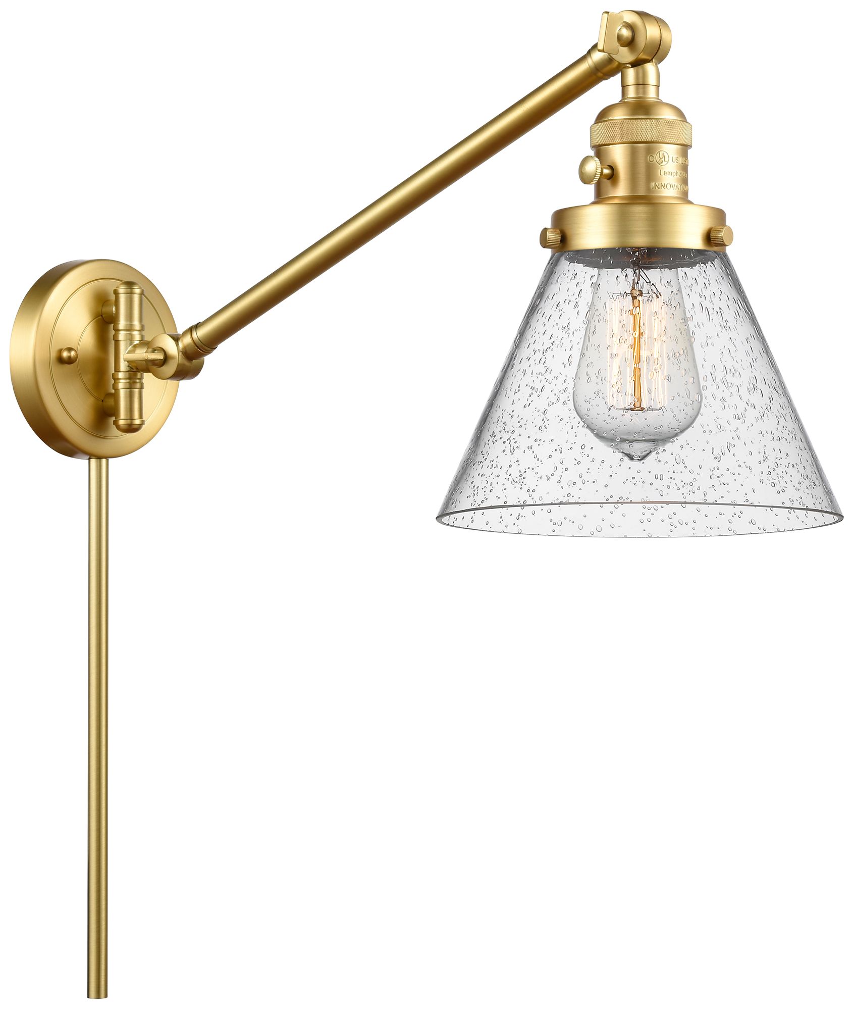 Franklin Restoration Cone 8" Satin Gold Swing Arm w/ Seedy Shade