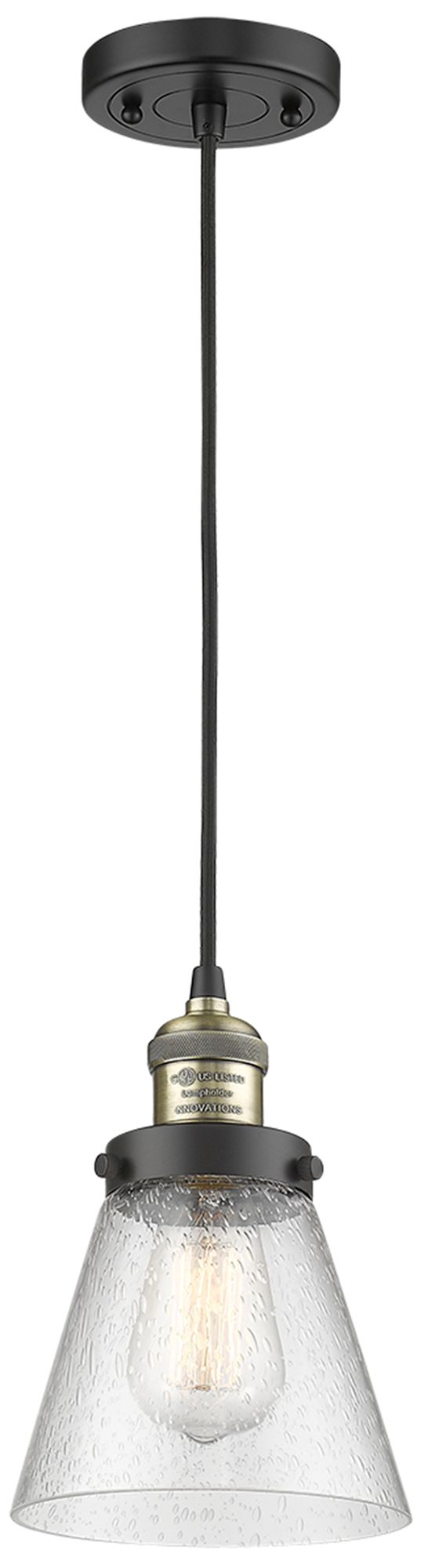 Franklin Restoration Cone 8" Black Brass Corded Mini Pendant w/ Seedy