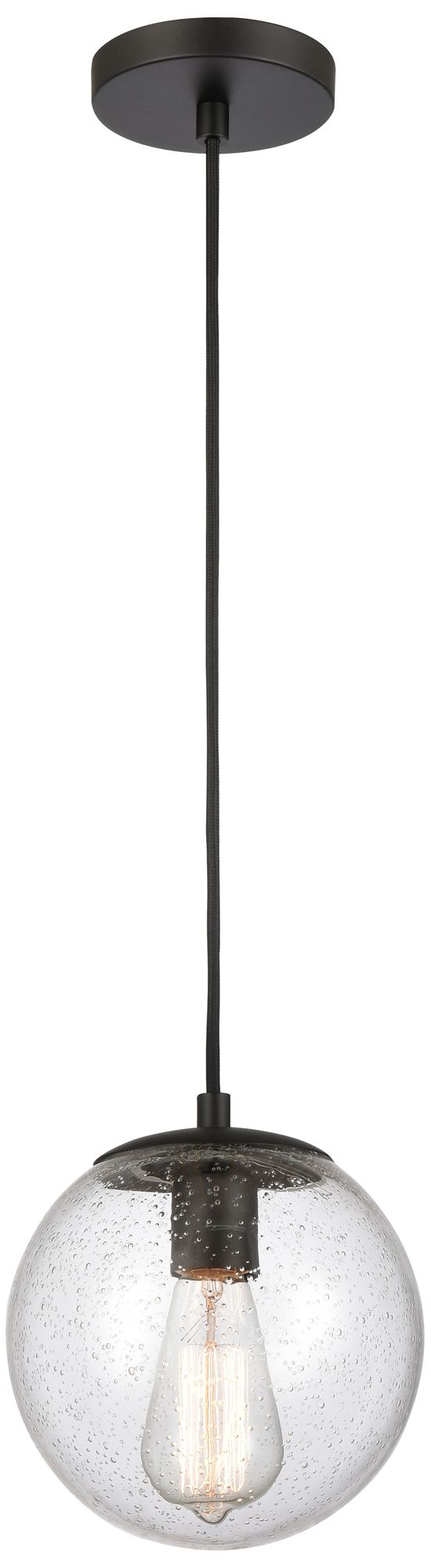 Auralume Tolland 8" Matte Black Mini Pendant w/ Seedy Shade