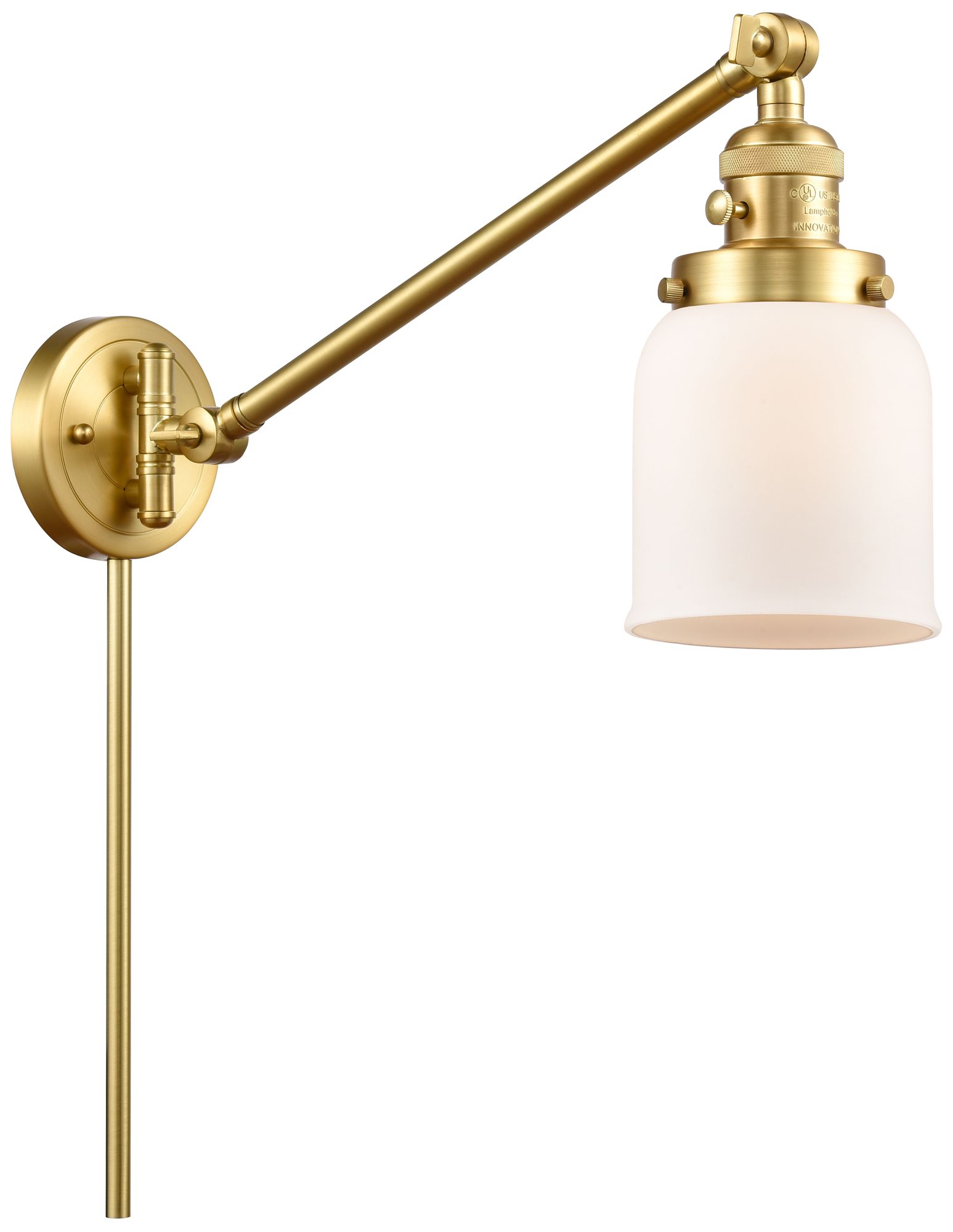 Franklin Restoration Bell 8" Satin Gold Swing Arm w/ Matte White Shade