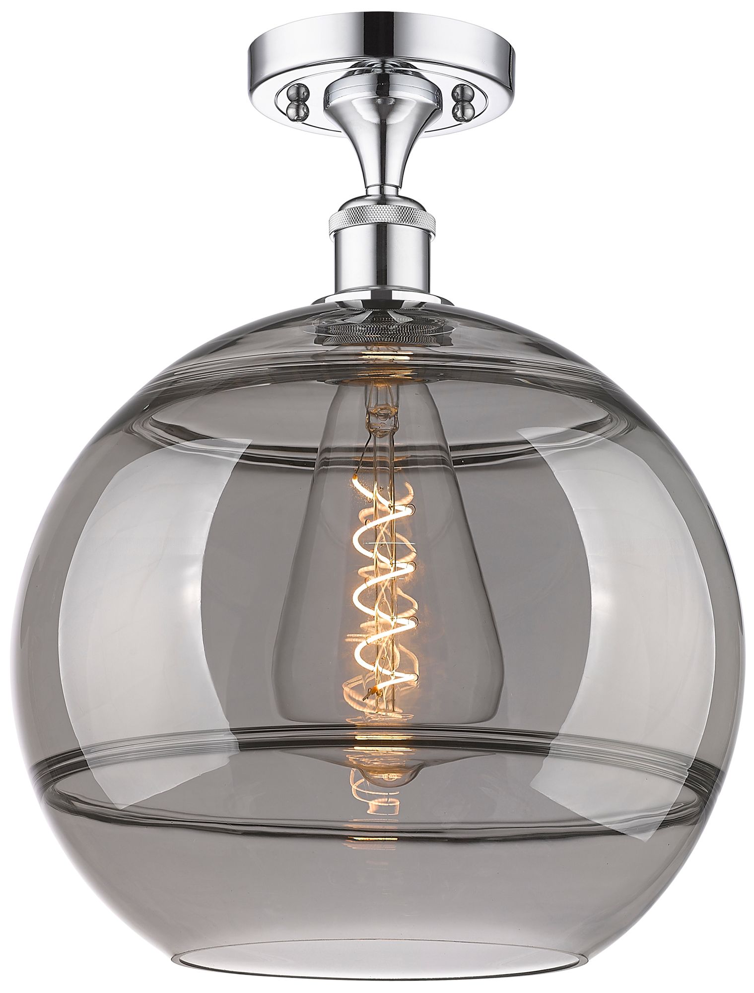 Ballston Rochester 12"W Chrome Semi-Flush Mount w/ Light Smoke Shade