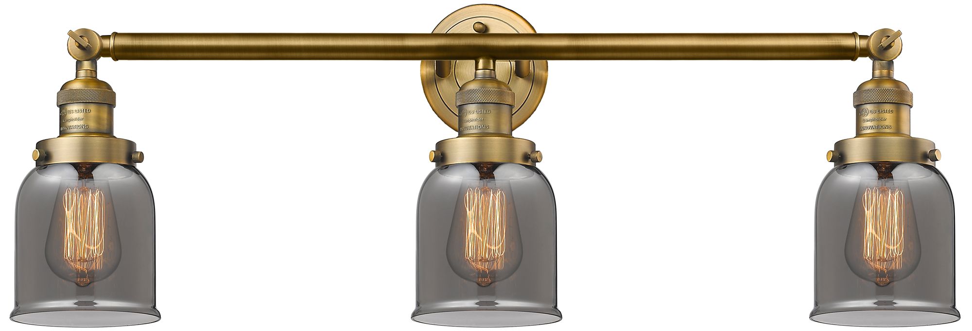 Bell 30" 3-Light Brushed Brass Bath Light w/ Plated Smoke Shade